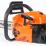 - Имеет боковое натяжение цепи, блокировку от случайного включения и кнопку подкачки топлива;